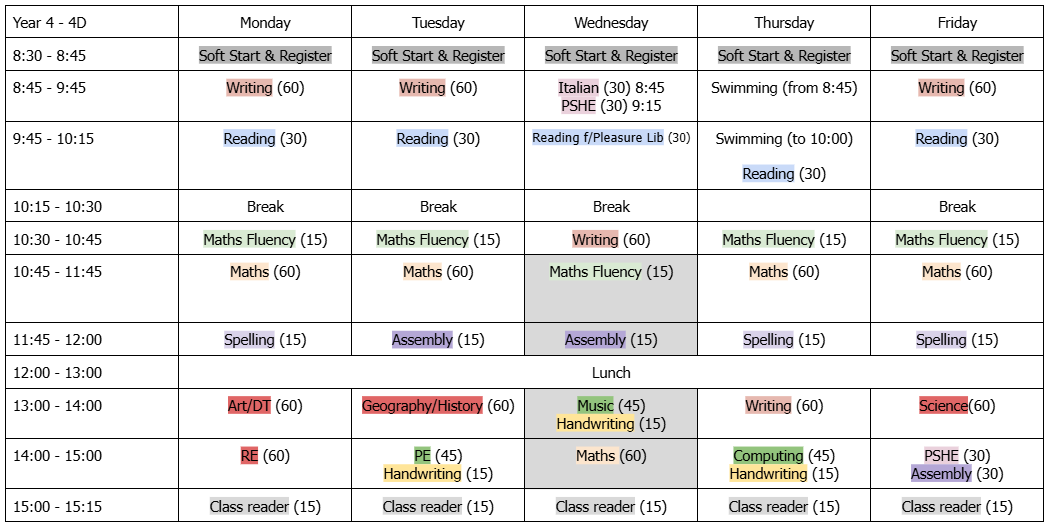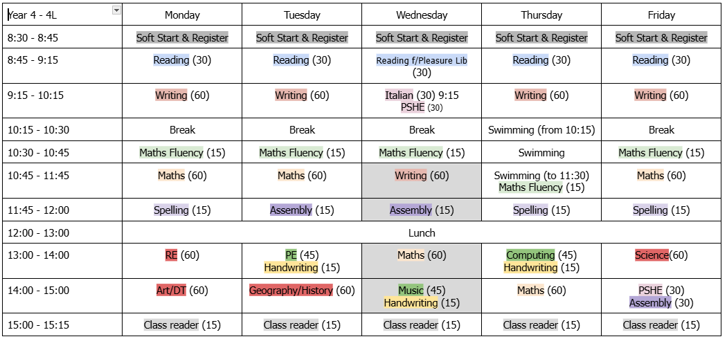 In Year 4, home learning is set every Friday in their homework book. They will get a new English, Maths and Spelling task weekly and an Optional task fortnightly.